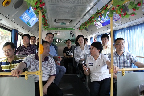 領導們首先聽取了707路專線的情況匯報,對專線的發展經過和建設成果給予充分肯定;隨后乘坐707巾幗文明號公交車體驗湘湖專線服務,導乘員向領導們介紹了線路途經的標志性建筑和景點,使他們對707專線的優勢和特色有了深刻感受,并對此次參觀給予較高評價。